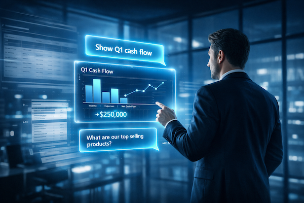 “What’s our current cash position versus the same period last quarter?” “Which cost centres exceeded budget in Q1?”