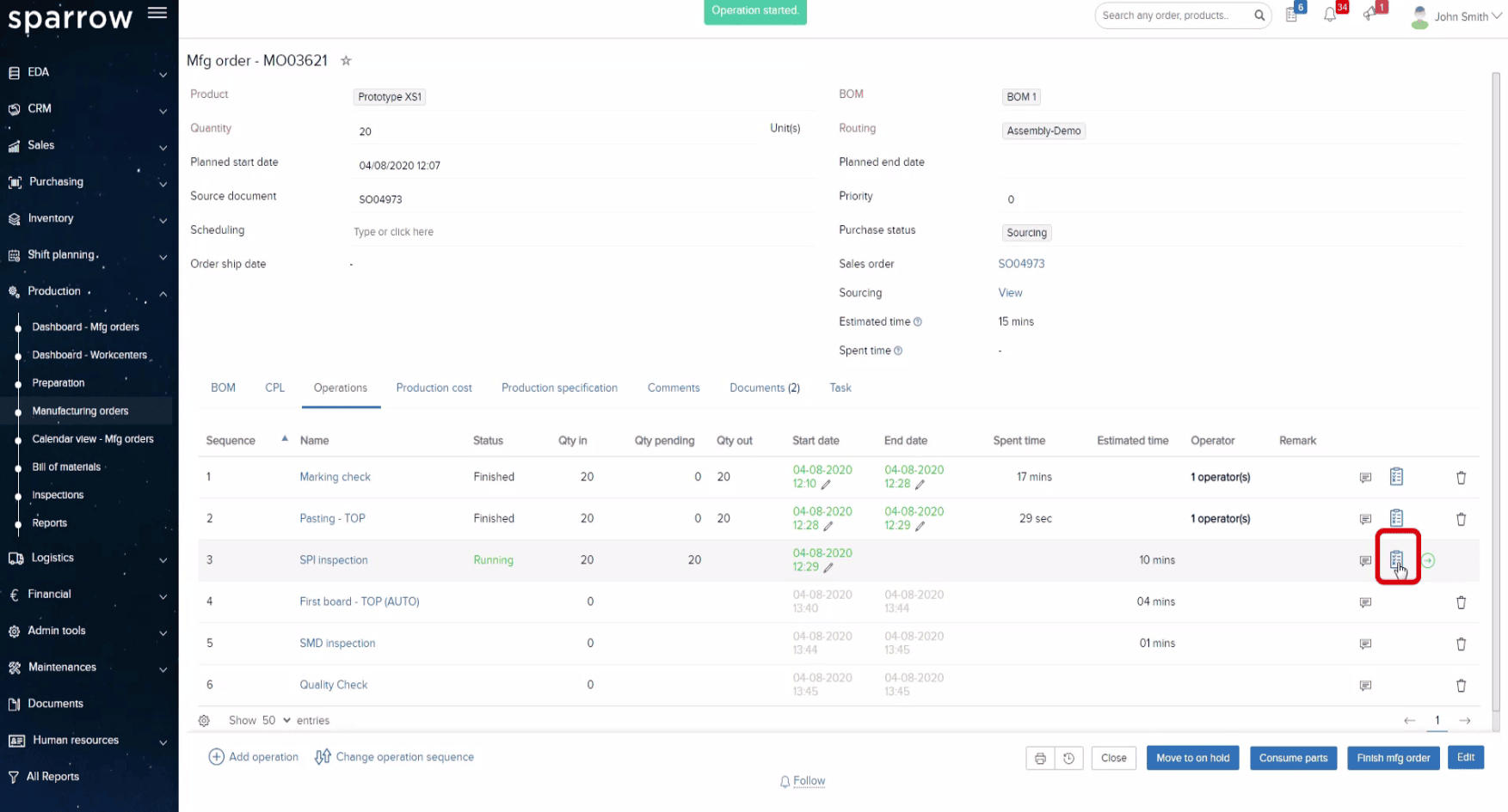- How to do Sourcing for Manufacturing Order in Sparrow ERP